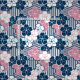 Sakurablommor i blått och rosa japanskt geometriskt kimono mönster med rand och vinkarare traditionellt orientaliskt struktur.
