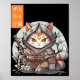 Japanska Samurai Warrior Kawaii Cat Anime Älskare Poster
