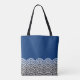 Den här blå tote-väskan har den klassiska seigaiha-vågen mönster på den nedre halvan. Bakgrunden är blå som havet, och klass till svart precis vid grund. Öppna anpassningsredigeraren om du vill ändra blått färg och lägga till namn eller text!