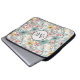 Den här bärbara datorn fodral har ett tresiffrigt monogram i svart på en cirkelbanderoll i mitten. Banderollen placeras på ett söt japanskt stil-blommönster med dominerande färg av tårblått, gult guld och rött på vitt. Distrakt och personlig bara för dig.