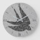 Klocka i en Silhouette för blandad media med svalt flygning, i en vintage av japanskt moln mönster mot en vridbar bakgrund, i djupt kol grått / grått, lätt grått från silver och vitt