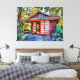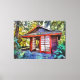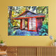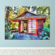 Den här konstduken har en målande vy av ett japanskt tehus i en avslappnande skogsmiljö. Det här är i en underbar botanisk trädgård, och det är en underbar ställe för teceremonier.