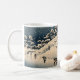 Sent - trycket för träklosset för århundradet för th som 19 täckte det japanska visar manar som reser till och med snön, bygd.