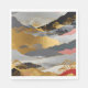 Ett gott japaninspirerat landskap med lagrade berg och träd, accentuerat med skarpa detaljer om guld. Denna elegant blandar traditionell estetik med modern abstraktion.