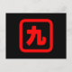 Japanskt nummer nio 九 【 Kyu 】 Kanji Vykort
