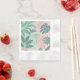 Diseño de servilleta de cóctel, ilustración de estilo art deco con motivos botánicos y florales, tonos pastel suaves de verde menta y rosa claro, siluetas de hojas tropicales y un contorno sutil de una copa de cóctel, sin texto, sobre un fondo liso.