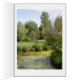 Typisk offentlig fransk jardin, med trä tar av planet, träd, blommor, damm.