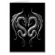 Två stam- drakar för silver vänder mot varje annan i denna aggressiva symmetriska design. De bevingada ormarna har det utseendemässigt av cast ut ur fast järn som skapar en bedöva look 3D. Drakarna sitter på en ren svart bakgrund som skapar en slå kontrast. Den metalliska strukturen och den djupa silverfärgen ger detta kort en stilfull look.