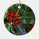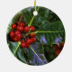 Foto av en samla i en klunga av järneklöv och röda bär. Denna makrobild av ett järnekträd visar den särskiljande jagged kanten av löv och en samla i en klunga av röda bär. En mycket festlig bild för julen kryddar!