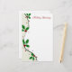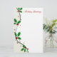 Festligt helgdaghandstilpapper, med en stranda av järnekspring besegrar vänster sida av brevpapperet. Helgdaghälsningar i rött skrivar text upptill. Skräddarsy för att tillfoga extra text eller använda på din egna skrivare hemma. Älskvärt papper för ditt ettårig växtjulbrev.