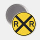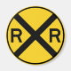 Varningsskylt för väg- och vägtrafik i internationell som avråder från järnvägsverksamhet.