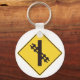 Ett vägskylt för järnvägsövergång på gultens bakgrund. Den här designen ser ut att vara effektiv i den här nyckelkedjan