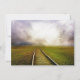 Järnvägsspår i landlig miljö Bröllopskort med ett vackert fält med järnvägsspår som sträcker sig över horisonten in i molnen. Dessa bröllopsannonser är perfekta för landsbygd eller landsbröllop eller för alla par som ger sig ut på en resa tillsammans.