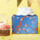 Röra sig i spiral curvy röda träd för klaffstil med hurtigt lite på en skimrande blåttbakgrund. Alla arbeten på storleksanpassar.