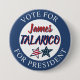 Politisk påstående knapp som säger "Team Talarico" för USA:s nästa president med en abstrakt amerikansk flagg bakgrund.