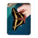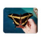 Svalstjärtfjärilen. Den största fjärilen i Nordamerika och Kanada. Med sina stora svarta vingar, ljusgula ränder och krökta svarta antenner. De är verkligen en av de vackraste fjärilarna. Deras värdväxt är citrus träd. Denna planterades på mitt lime träd. Honan lägger sina runda bruna ägg på den minsta, nyss vuxna delen av växten. Njut av detta vackra fotografi av svalstjärtfjärilen på magneter i min butik! Copyright Fotograf Deborah Carr