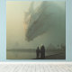 Jättevita drakar över dimmiga stadspiren canvastryck