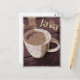 En vintage rustik illustration av ett fyllt kaffe mugg i kaffe - jordtoner färg med texten " Java ".