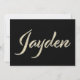 Eine personalisierte schöne und edle Karte / Grußkarte / Geschenkkarte / Geburtstagskarte im Handwriting liquid white gold Design für Jayden.
