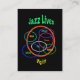 För de, som älskar jazz, är posta-bop detta konstnärhandelkort ett firande av det mycket bäst av bebopen och eras. Färgrikt cirklar av rött, blått, lilor, vit, och turkos inneslutar några av de underbara musikerna. Allt är fastställdt av vid gult- och grönttext på en ren svart bakgrund.