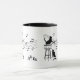 Två katter i silhouette spelar trumma och cymbal för en grupp dans möss med musik noter som flyger runt på en 11 oz mugg med två toner.
