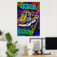 Behåll Coolan Jazz Poster Skriv ut med en elektrisk gitarr, saxofon och förvrängd tangentbord på en psykodelisk bakgrund.