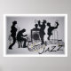 Ett digitalt foto av Jazz-kvartetten. underbar utskrift för att accentuera en vägg med dess svarta silhuett och SHINY GULD-anteckningar som dyker upp för färg.