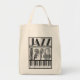 Svarta och vita jazz-temat till väskan. Konstruktionen har en mängd olika musikinstrument, inklusive ett tydligt, upprätt baser, gammal mikrofon, trumpet, piano och ett trumpinne. Underbar vardagsväska för musiken älskare, lärare eller student. Den ursprungliga teckningen gjordes i kol.