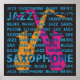 Jazz och blues saxophone, poster för jazz och Music fläkt, typografisk design stil.