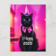 Följ med oss på en glad nyårsfirande med ett avslappnat vykort som visar livfull fantasykonst! En stilren svart katt med spetsig hatt och lila slips har en jazzig look, åtföljd av texten "Glad 2025" och ett roligt citat på andra sidan: "Mår kattbra inför det kommande året—låt oss festa!"