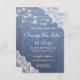 Sak förändras. Skicka ett sparat datumkort för att få gästerna redo att fira bröllop eller party med den här blå jean, snöre och strängen i blommigten ljus land att spara datumkortet. på faux jean