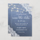 Skicka ett sparat datumkort för att få gästerna redo att fira bröllop eller party med den här blå jean, snöre och strängen i blommigten ljus land att spara datumkortet. på faux jean
