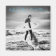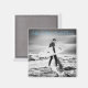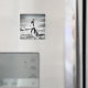 Fridge magnet med ett moody svart och vitt foto av en surfare som korsar revet för att åka och surfa fantastisk vid Jeffrey's Bay i South Afrika.