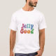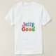 Den här snygga t-shirt-designen innehåller frasen "gelégodisets Bra" i en levande, flerfärgad visning. Varje brev kan vara en annan leksak, som påminner om olika gelésmaker som druvor, jordgubbar och orange. Teckensnittet kan vara bubblande och något nyktert, vilket återspeglar geléets glupska karaktär. Den här designen är perfekten för att sprida en glad och söt vibe var du än är.