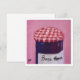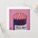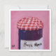 Oljemålning av en burk gelégodis med rosa bakgrund.