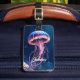 Jellyfish Art, White Script Name, Contact Info Bagagebricka