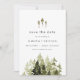Det här sparar datumet med rustik vattenfärg gräs träd och ett handskrivet bohemskt teckensnitt. Redigera enkelt alla formuleringar i den här inbjudan för att bättre uppfylla dina behov. Lägg till fotot på baksidan om du vill ha en personlig beröring. Det här sparandet är perfekt för din boho-bergsskog bröllop.