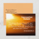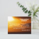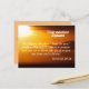 Jeremia 29 11 Grattis vykort med en vacker soluppgång solnedgång som visar vers Jeremia 29:11, som lyder "Ty jag vet vilka planer jag har för er," säger Herren, "plan för väl och inte för ve, för att ge er en framtid och ett hopp." På baksidan står det "Må Herren välsigna dig, ge dig fred och leda dig på alla dina vägar när du följer honom. Grattis på din examen, din framtid är ljus.