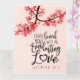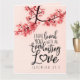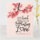 Inspirationscitat bibelcitat gratulationskort visar ett naturfoto av en gren med rosa blommor på rosa bakgrund. Det visar en del av en uppmuntrande bibelvers, Jeremia 31:3, "Jag har älskat dig med en evig kärlek." Grattulationen kan anpassas eller raderas för en handskriven hälsning och kortet kan användas vid många tillfällen. Foto av Patrick Shaun.