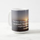 Kaffe mugg med soluppgång och den uppmuntrande bibeln från Jeremiah 29:11.