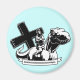 Bläck teckning av Jesus som rider på T-Rex-behemoskan, med kor och "Riiiiiiiiiiiiiight." i en rulla banderoll. B/W, t-tröjor, svettningar, kort, presenter.