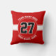 Jersey-nummer, lag och spelare namn-röd och vit sport dekorativ kudde. Den visar det jersey-nummer, det team och den spelare namn som kan bytas ut mot röd bakgrund. Det finns ett vitt och rött band. Färg: rött, vitt, svart.