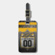 Lägg till lite gridiron glam till din utrustning med den här luxe faux glitter-bagagetaggen. Med en svart och silver gnistra, guld och gult top rand och en vapensköld-stil emblem med glitter fotboll och stjärnor. Anpassa med ditt namn och ditt jersey-nummer på framsidan och lägg till kontaktinformation eller instruktioner på baksidan. Perfekt för mammor, spelare eller fläkt som kärlek gnistror med sin idrott.