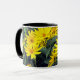En mugg med vackra Jerusalem artichoke blommor. Bakgrunden, bilden och texten kan ändras. Originaldesign av W.B.
