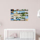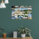 It features a gorgeous montage of scenes from all over New and Old Jerusalem, including the Temple Mount and Western Wall, the Menorah at the Knesset, the Tower of David, the Generali building, and the new suspended railway bridge. In the center is the word Yerushalayim in Hebrew, with the "vav" itself spelling out Jerusalem in English.