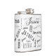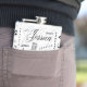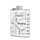This typography custom name flask showcases "Jessica" and is an Ideal gift for the any celebration, it has a background pattern inspired by the initial "J" and is adorned with contrasting colors of black, white, and grey.