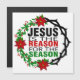 Jesus är anledningen till årstiden, denna design har en törnekrona och en julkrans med texten "Jesus är anledningen till årstiden".