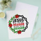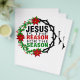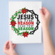 Jesus är anledningen till årstiden - flygblad. Letar du efter ett unikt sätt att visa din julstämning? Denna unika julkrans är perfekt för alla som vill sprida det glada budskapet om Jesus Kristus. Kransen är gjord av gröna och röda poinsettablad och är accentuerad med en törnekrona. Det är en påminnelse om att Jesus är anledningen till årstiden. Så låt oss sprida julens glädje!