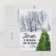 Denna snöiga scen med kala träd och en ensam röd glödlampa som hänger på en gren. En grön julgran i förgrunden med en stark stjärna på toppen. Uttrycket "Jesus är anledningen till säsongen" säger allt.