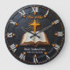 Enhance your home with a high-energy and sophisticated declaration of faith using this unique Bible-themed wall clock. The central face features a high-definition graphic of an open Bible resting beneath a radiant golden cross, accompanied by the scriptural acronym "basic instructions before leaving Earth." While the artwork masterfully mimics the appearance of a 3D sculpted black dial with textured impasto strokes and raised metallic gold accents, this is a lightweight and durable graphic timepiece rather than actual carved wood or metal filigree. The large, off-white Roman numerals are set against triangular golden markers on the outer rim, providing a professional and polished contrast that makes the time easy to read. This timepiece serves as a powerful focal point for an office, library, or prayer space, offering a meaningful self-gift for those who value high-quality spiritual art and daily scriptural inspiration.